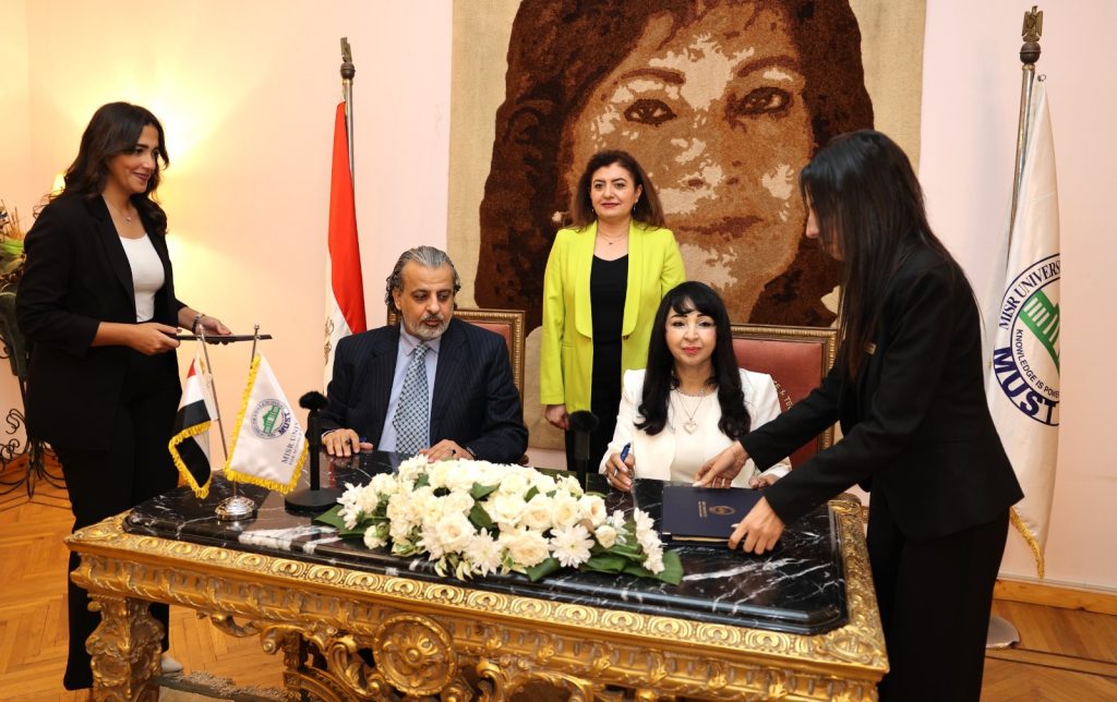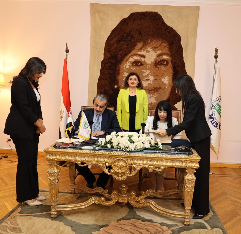 We are proud to announce that, with God’s grace, on Wednesday, October 8, 2025, at 11:30 a.m., a strategic cooperation protocol was signed between the Arab Media Forum Authority, represented by His Excellency Dr. Madi Al-Khamis, Secretary-General of the Forum, and the College of Media and Communication Technology at Misr University for Science and Technology, represented by Her Excellency Prof. Dr. Hala Al-Manoufi, President of the University, in the presence of Prof. Dr. Amani Omar Al-Husseini, Dean of the College, along with a distinguished group of the faculty’s leaders, at the university’s VIP Hall.